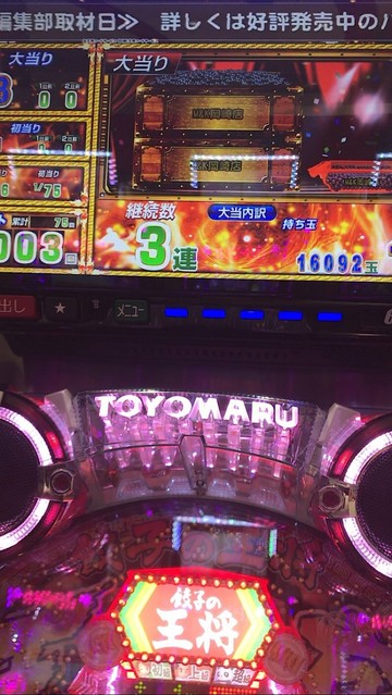 CR餃子の王将3 豊丸産業 お気に入りに追加 収支を入力する 最新攻略情報GET!ネット上にも、餃子の王将 7000がジワジワと話題になっているようです。 このページでは、 餃子の王将 7000 についてジャンルに限らず、テレビやMail Magazin・などで発信されている情報を集めながら、みなさんに役に立つ情報を情報発信していくサイトにしていく予定です。 最近またパチンコを打ち始めて、 餃子の王将3 も試し打ちしたところ、 そこそこ回る調整で、大当たり中の止め打ちで予想以上に出玉が取れることが判明。 メガ盛7000だと打ちっぱなしなら7000発弱ですが、 止め打ちのみで約7400発と約500発近い差になり